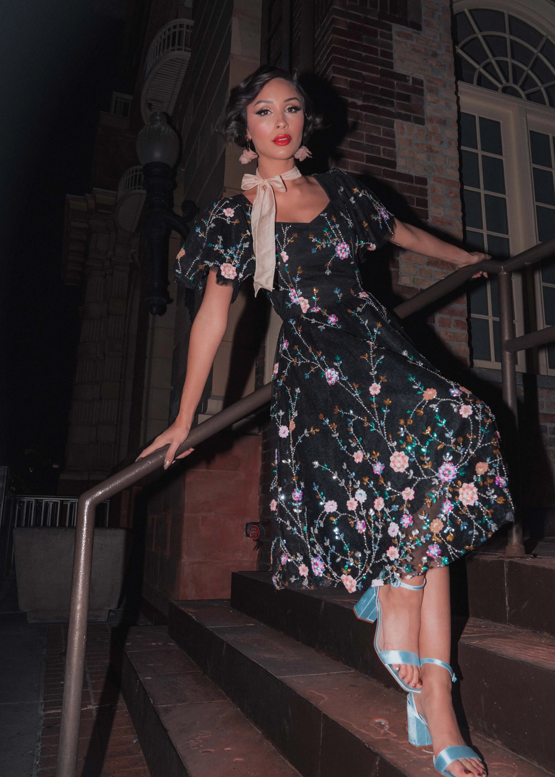 Adorned with delicate sequin floral patterns, our Shimmer Dress brings a touch of nature's beauty to your attire. The intricate detailing adds a touch of romance and whimsy to your look, making it perfect for weddings, garden parties, or any occasion where you want to radiate charm.